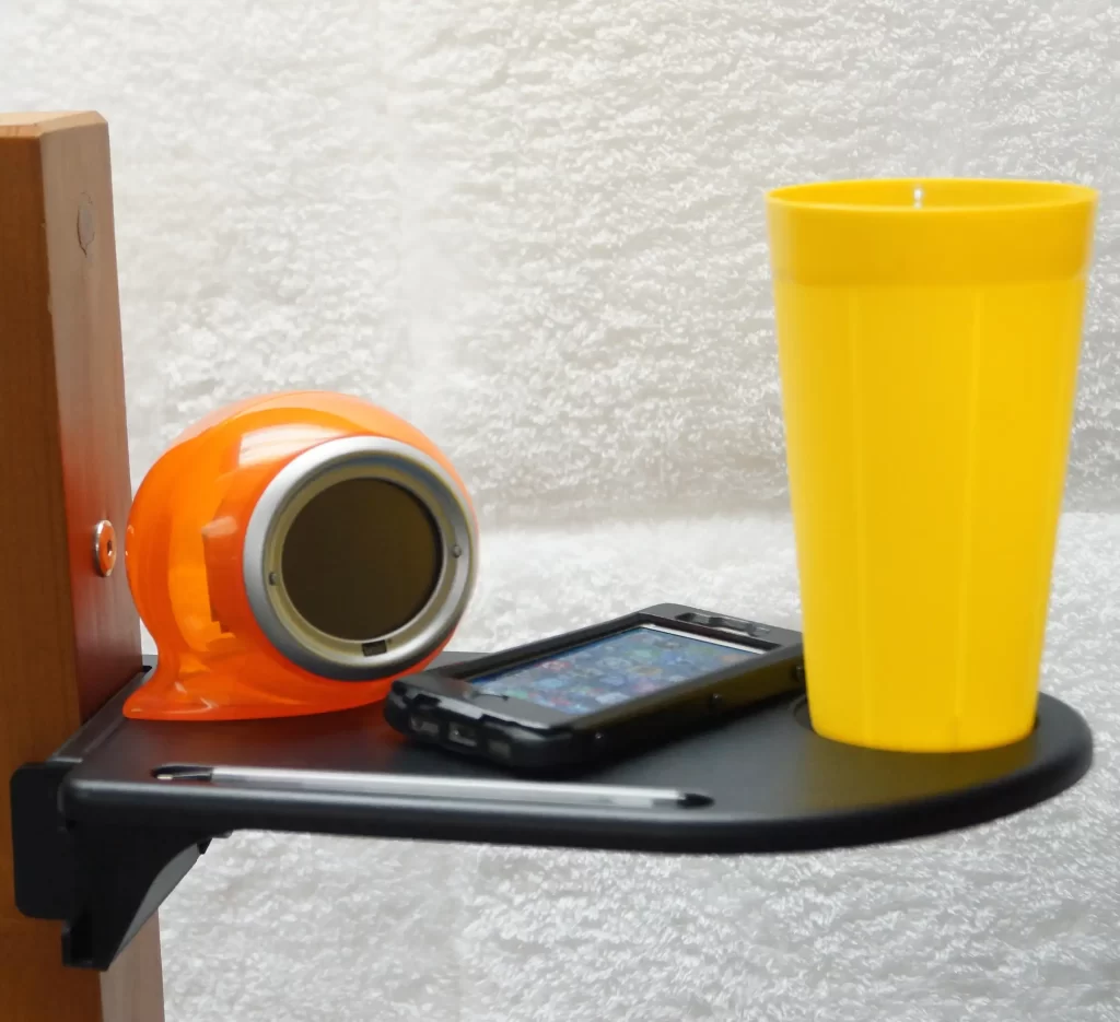 Our bedside shelf is a must-have dorm supplies product for any student that has a bedloft, or just doesn’t have room for a nightstand. This useful dorm accessory is simple, yet it provides such a basic need. If you sleep up high you can’t have a bedside table and if your room is small you may not have one anyway… so what do you do? Because jumping in and out of bed to turn off your alarm clock, put your drink down, get the TV remote or just answer your cell phone are all not realistic options, you need our bedside shelf!