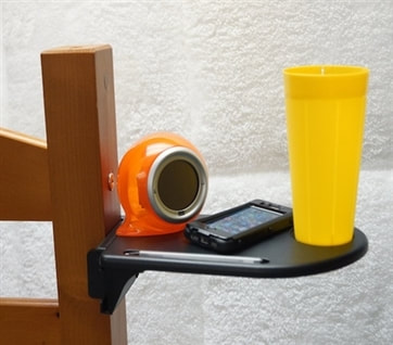 Our bedside shelf is a must-have dorm supplies product for any student that has a bedloft, or just doesn’t have room for a nightstand. This useful dorm accessory is simple, yet it provides such a basic need. If you sleep up high you can’t have a bedside table and if your room is small you may not have one anyway… so what do you do? Because jumping in and out of bed to put your drink down, get the TV remote or grab your phone is exhausting, you need our bedside shelf!